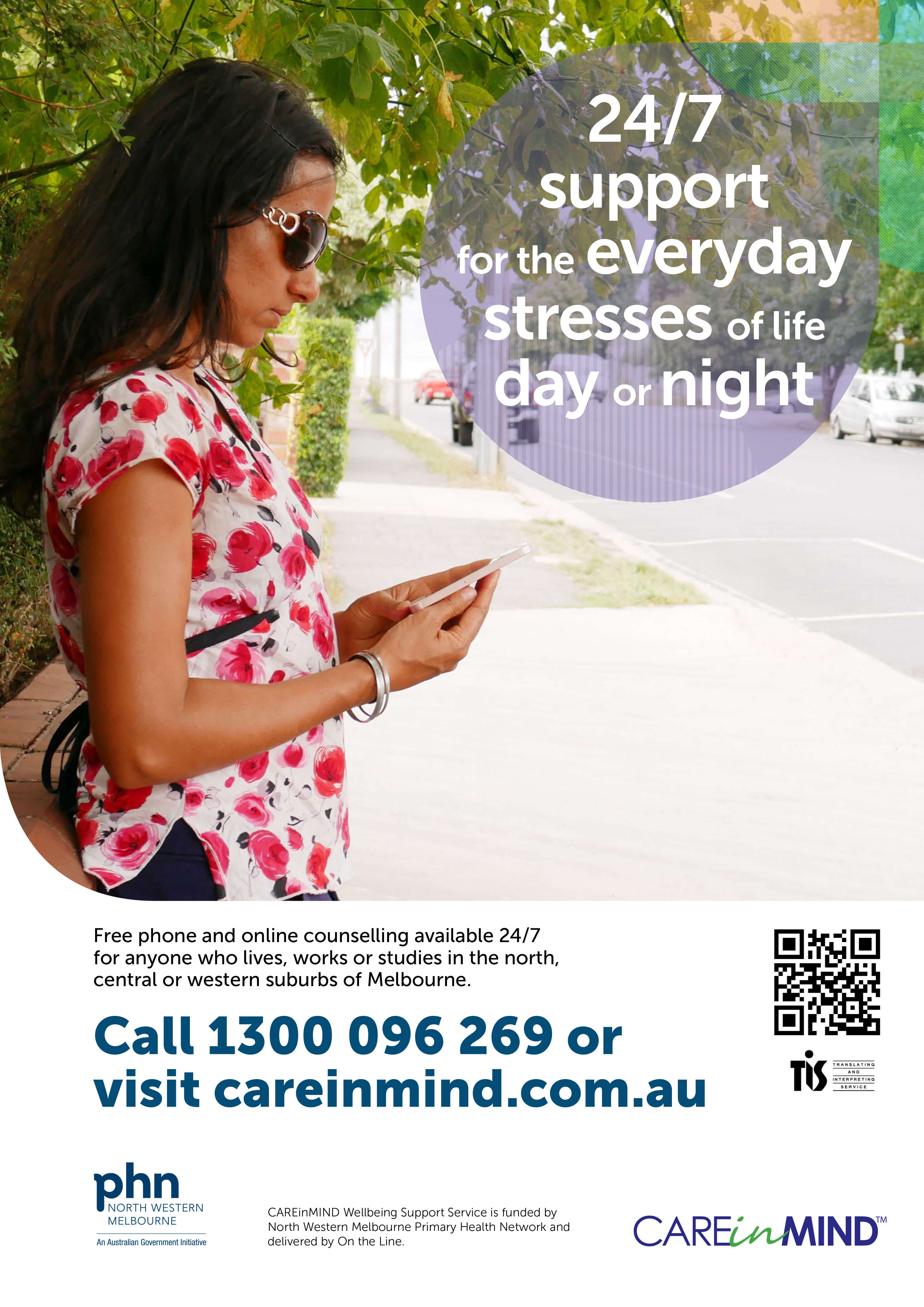 CAREinMIND provides free mental health services for people in north western Melbourne.