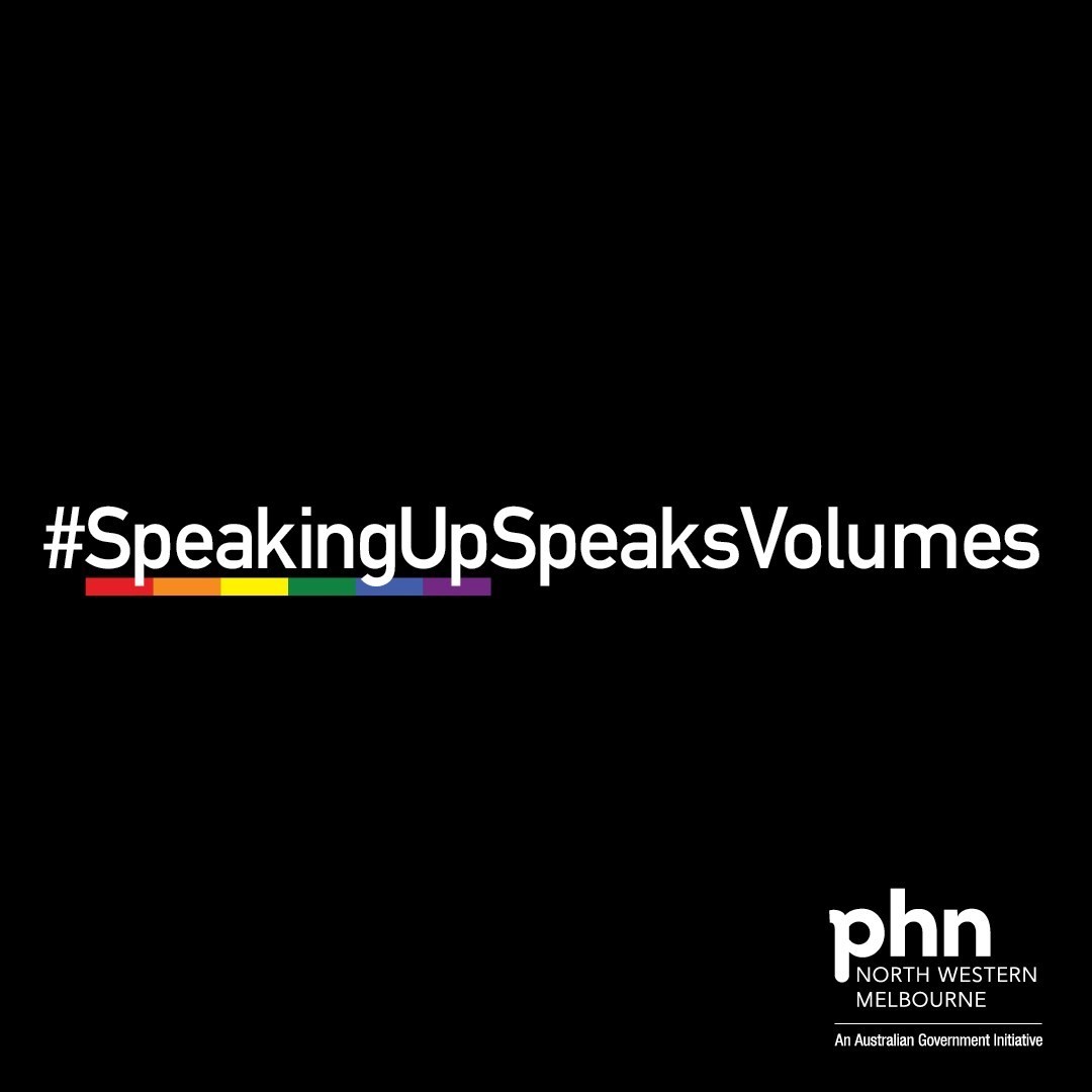 The #SpeakingUpSpeaksVolumes campaign aims to raise awareness and activate silent supporters in the wider community to change behaviour that excludes, discriminates or isolates people who are LGBTIQ+.