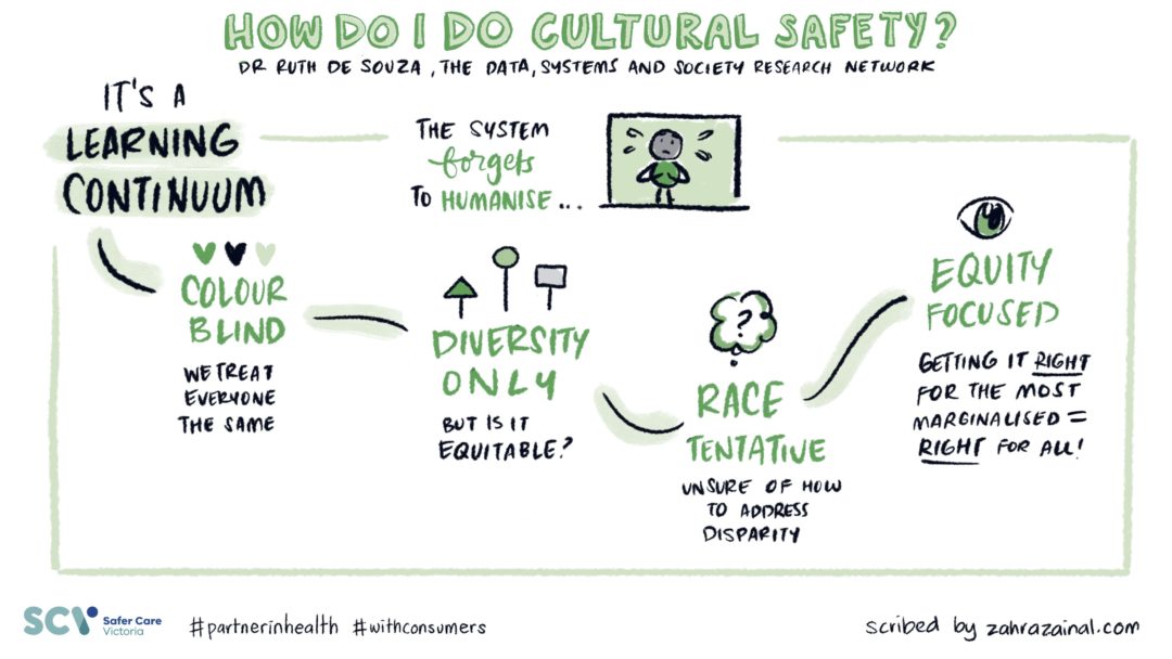 This includes the ongoing critical reflection of health practitioner knowledge, skills, attitudes, practising behaviours and power differentials. In order to do this, we have to become aware of some of our unconscious biases.