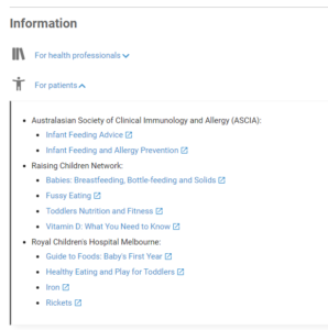To complete the consult, the GP sends Sara useful patient resources from both pathways, including the Raising Children Network Toddlers Nutrition and Fitness patient resource for her to look over and refer to following the appointment.