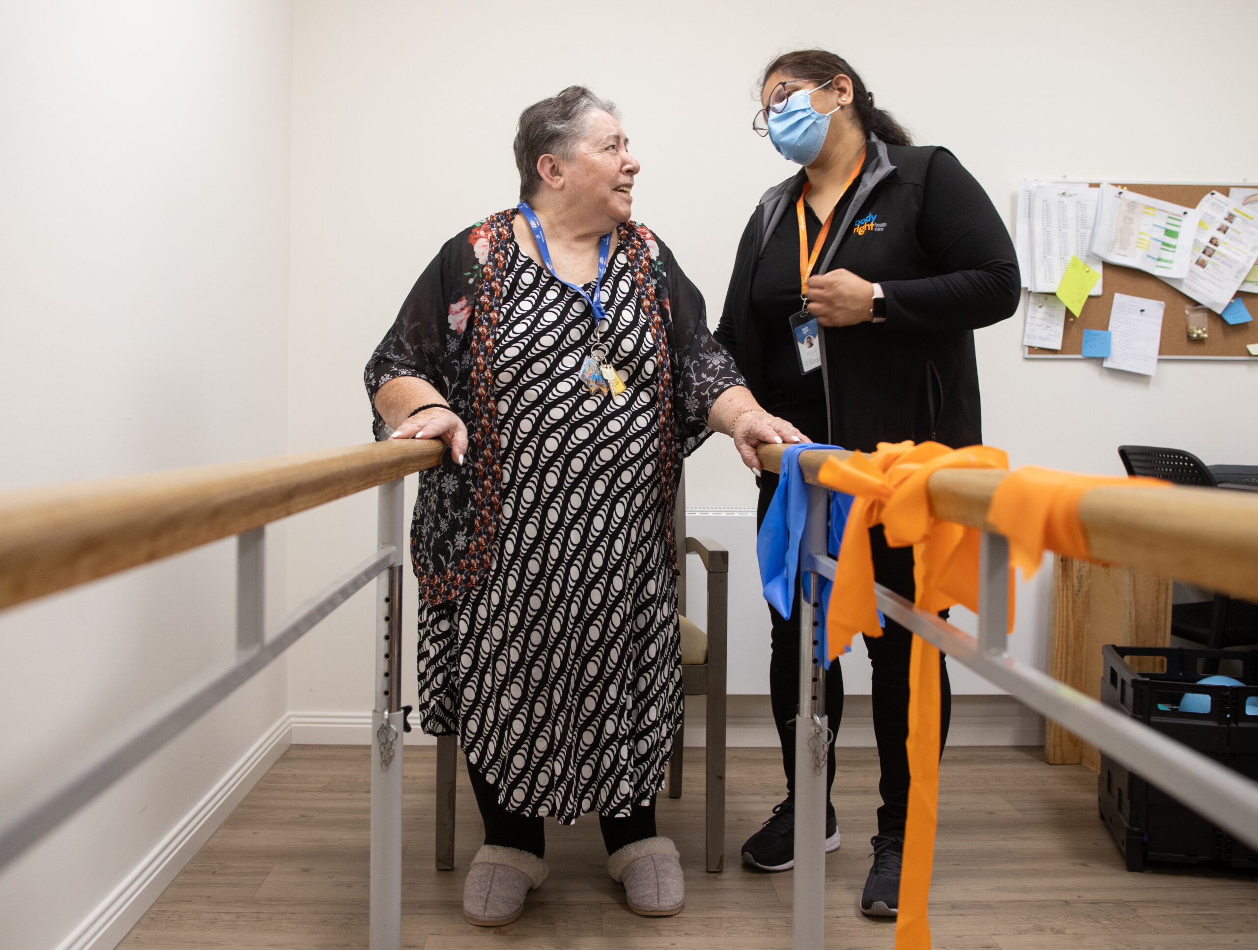 Fronditha Aged Care 26/9/2023. Physiotherapists working with elderly residents at Fronditha Aged Care.