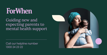 ForWhen provides new and expecting parents – mums, dads, and guardians – with a caring, supportive mental health navigation service, to guide you and your family throughout your perinatal journey, from your baby’s conception until their first birthday.