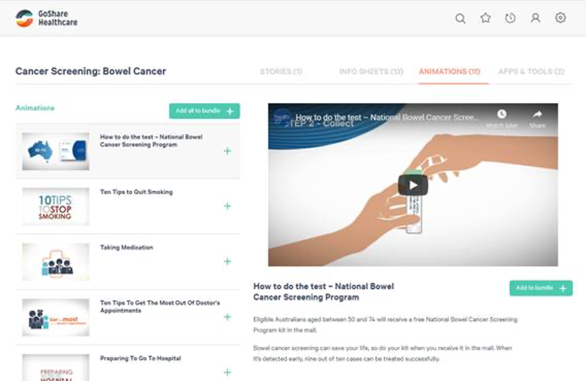 Providing evidence-based information to your patients can improve self-management and empower people to play a more active role in their healthcare. GoShare is a platform to help general practices share health resources that are tailored to the patient’s needs.