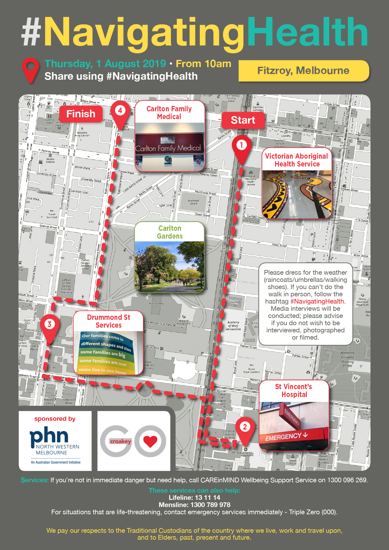 We invite you to share your knowledge and experiences with us to inform the North Western Melbourne Primary Health Network Regional Mental Health Plan. We’ll be doing short interviews or you can you just walk and chat with other people interested in making the mental health system fairer.