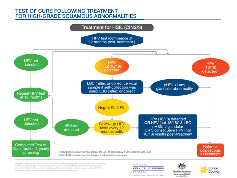 Post-treatment management (‘test of cure’) recommendations for people who have been successfully treated for a high-grade squamous intraepithelial lesion (HSIL)