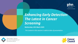 This webinar will equip GPs and practice staff with the latest information on cancer screening programs, including upcoming updates to the National Cervical Screening Program guidelines and the latest changes to the National Bowel Cancer Screening Program.