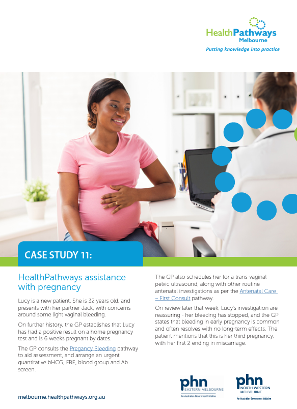 Lucy is a new patient. She is 32 years old, and presents with her partner Jack, with concerns around some light vaginal bleeding. On further history, the GP establishes that Lucy has had a positive result on a home pregnancy test and is 6 weeks pregnant by dates.