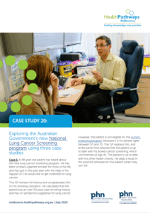 - Case 2. A 59-year-old patient presenting for repeat scripts was identified by his GP as a potential candidate for the new lung cancer screening program. The patient fitted the 50 to 70 age range, was asymptomatic, and was actively still smoking.