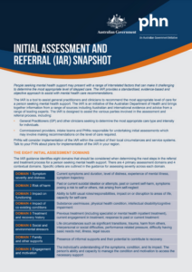 This document provides a snapshot of the Australian Government’s Initial Assessment and Referral Decision Support Tool for mental health consultations.