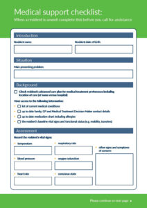 The checklist is based on the ISBAR communication tool, assists staff when a resident is unwell, and support is required.