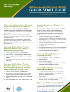 National Cancer Screening Register – Health Care Provider Portal Quick Start Guide