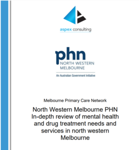 In 2015–16, North Western Melbourne Primary Health Network engaged Aspex Consulting to undertake an in-depth review of mental health and alcohol and drug treatment needs and services.
