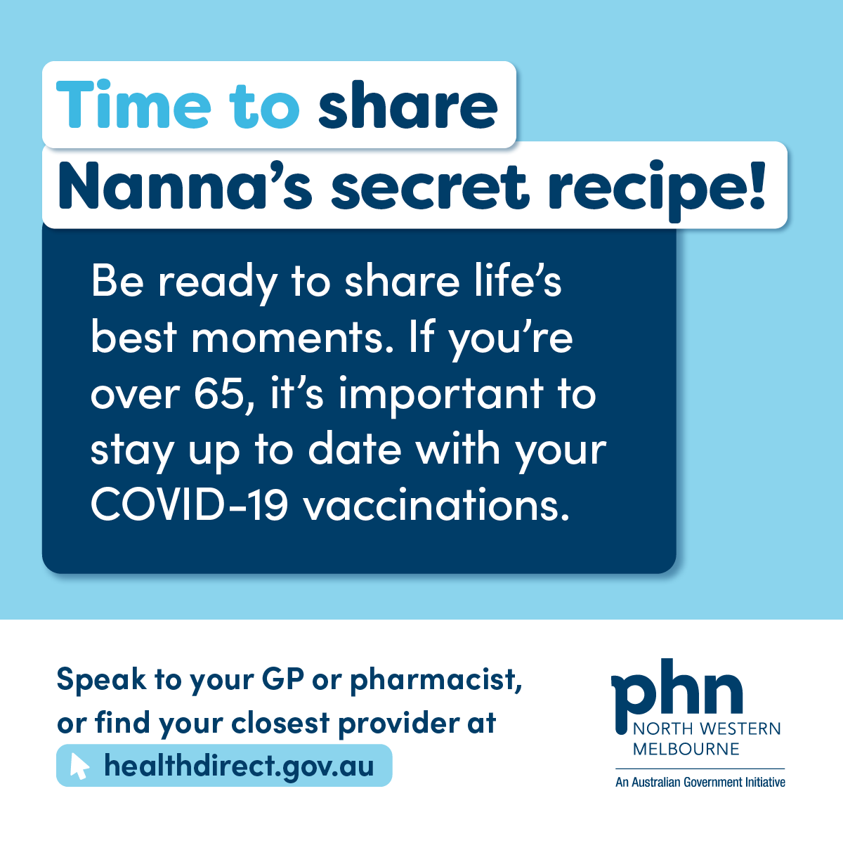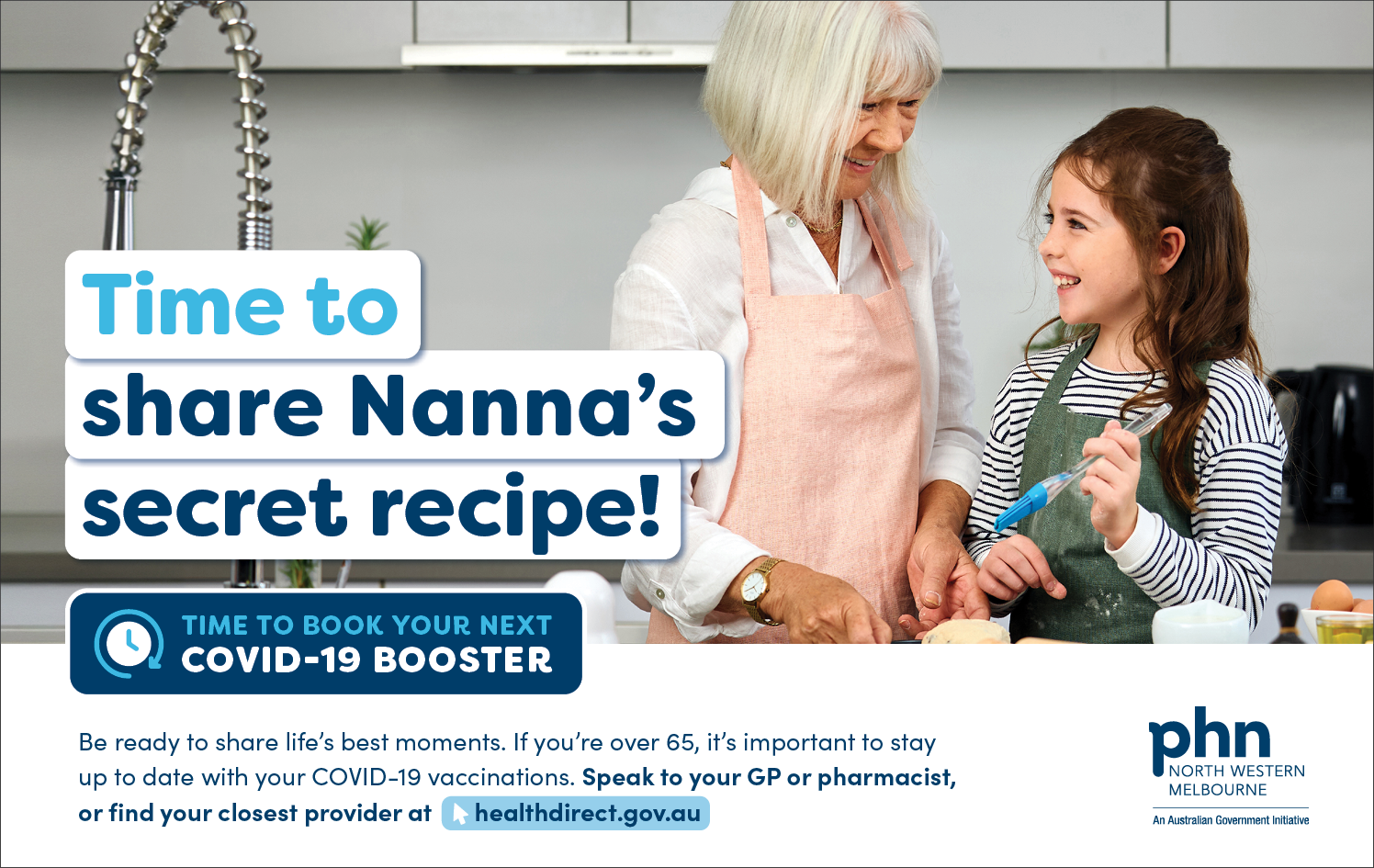 Victorian PHNs, including North Western Melbourne Primary Health Network (NWMPHN), have developed a marketing campaign for older adults to keep their COVID-19 vaccinations up to date.