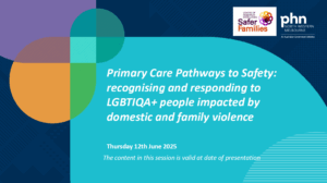 Join NWMPHN and the University of Melbourne in this session which will upskill primary care staff in recognising and responding to LGBTIQA+ people impacted by domestic and family violence.