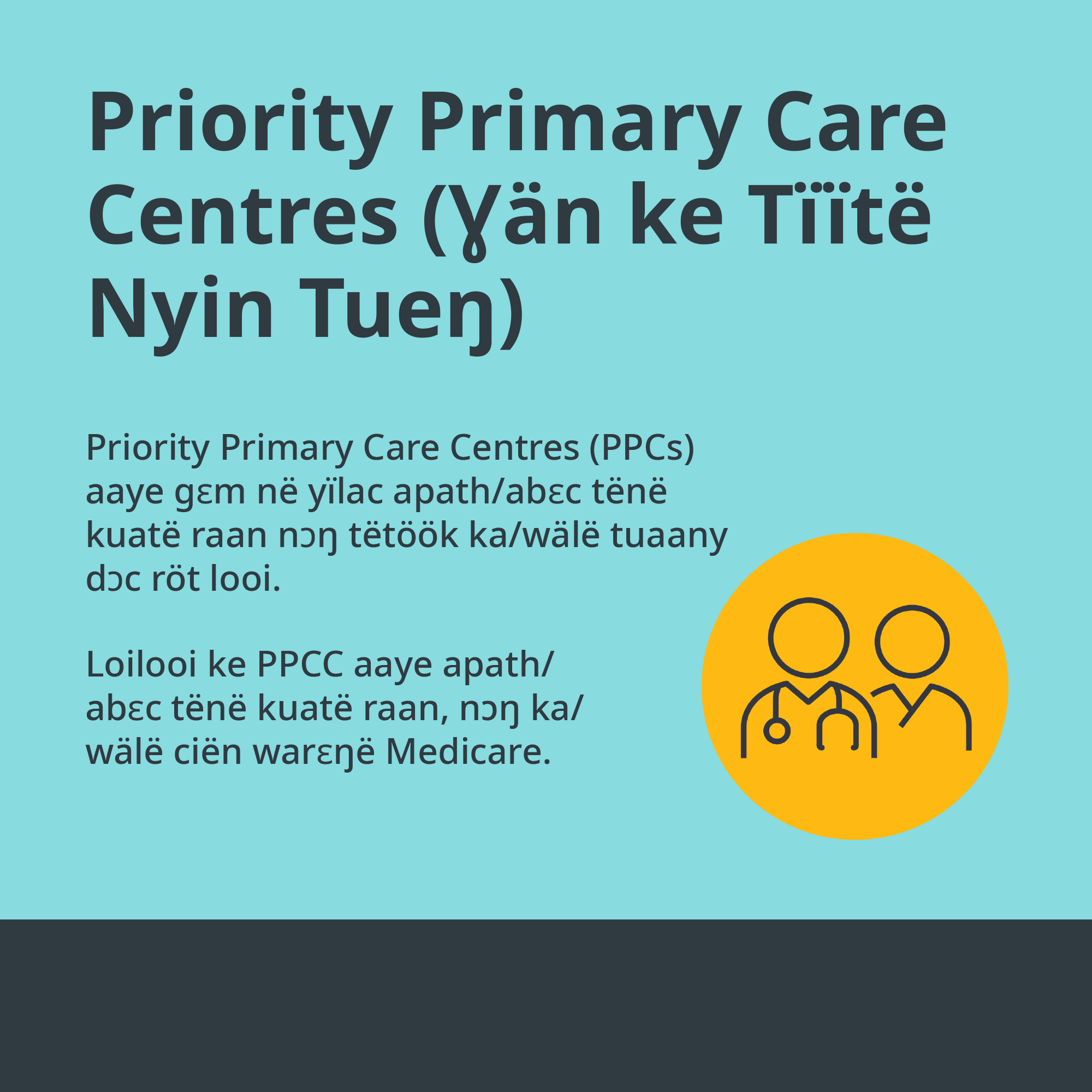 *NOTE: PPCCs have been replaced by Urgent Care Clinics (UCCs). Translated UCC resources are expected soon.